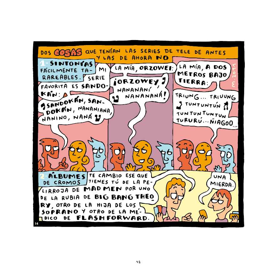 Truffaut, películas de adolescentes de los años 80, Viggo Mortensen, los anuncios de la tele, cursos para aprender a tener la tele encendida menos tiempo, los mandos pegajosos de las consolas, las disculpas típicas de los que pierden a los videojuegos y cientos de gags en los que la mayoría de las veces te verás muy reflejado.