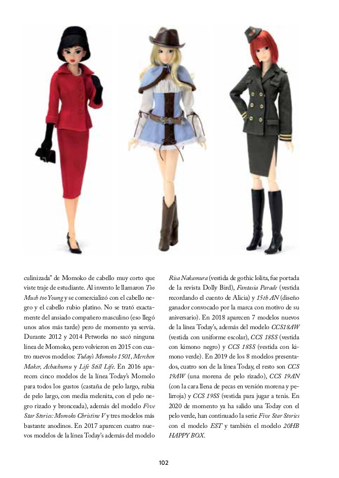 Momoko, Licca, Blythe… es el título de este libro, pero dentro encontraréis muchas más muñecas japonesas, y no solo de ese país, también chinas, coreanas o hongkonesas. El mercado asiático de las fashion dolls está en pleno auge. En este repaso general a todas ellas, bucearemos en los orígenes de las muñecas de Japón, veremos las principales empresas jugueteras del momento, y haremos una introducción al fantástico mundo de las BJDs, que junto a Blythe son las muñecas con más seguidores en todo el mundo, a las que se les dedican convenciones, festivales y ediciones especiales.